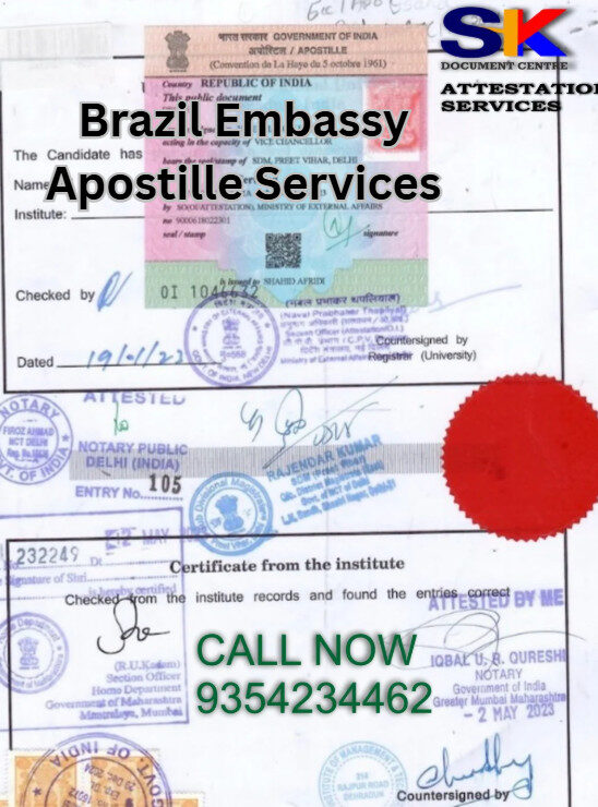 SK Document Centre offers fast, transparent, and reliable Brazil Embassy Attestation services with door-to-door support, ensuring a smooth and hassle-free experience for students, professionals, and businesses.